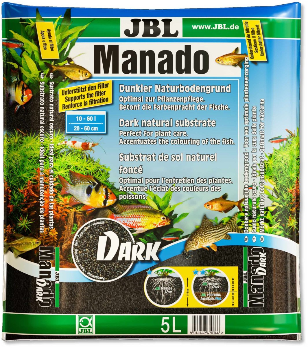 - Поєднання з поживним субстратом тривалої дії - Поживний субстрат тривалої дії JBL ProFlora AquaBasis plus і грунт JBL Manado Dark в якості верхнього шару гарантують енергійний і здоровий ріст навіть дуже вимогливих рослин.