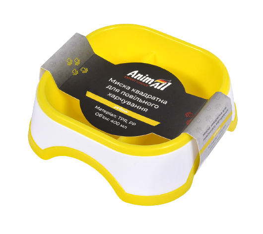 AnimAll 0211 миска квадратна для повільного харчування 400мл, жовта