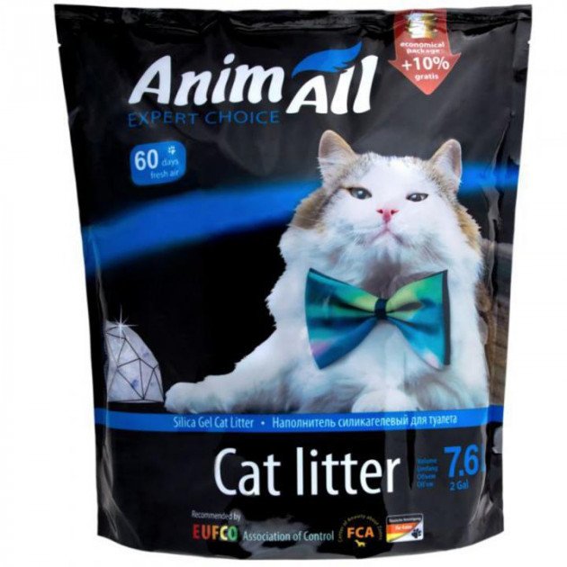 Наповнювач для котячих туалетів на основі силікагелю TM AnimAll німецької компанії Animall International GmbH. Силікагель ТМ AnimAll – це висушений гель полікремнієвої кислоти (SiO2), який хімічно складається з того ж з'єднання, що й звичайний пісок, але є високопористим тілом, тому має величезну площа поверхні (800 м²/1 г). Завдяки цій властивості силікагель має унікальну абсорбуючою (що вбирає) здатністю. Волога й запах зникають у силікагелі AnimAll миттєво, але сам наповнювач ніколи не перетворюється в грузлу масу й не прилипає до котячих лабетів, а виходить, не розноситься по будинкові. Силікагель AnimAll прекрасно висушений, що можна визначити по прозорості його кристалів. Це дозволяє йому усмоктувати максимальна кількість рідини. Також необхідно відзначити високу гігієнічність силікагелю AnimAll, який прекрасно справляється з будь-якими бактеріями, підтримуючи чистоту вашого будинку й опікуючи здоров'я вашого улюбленця. У середньому один пакет 3.8 л наповнювача AnimAll розрахований на один місяць для однієї кішки. На цей час ви забуваєте про неприємний захід і зайвих турботах по догляду за свійською твариною. Інструкція із застосування 1. Наповните сухий і чистий туалет наповнювачем AnimAll (шар від 3 до 5 см). 2. Регулярно забирайте тверді відходи. 3. Перемішуйте вміст лотка раз в 1-2 дня . 4. Не рідше 1 рази в 4 тижні повністю заміняйте наповнювач на свіжий. 5. Щоб уникнути засмічення каналізаційних стоків не викидайте використаний силікагелевий наповнювач в унітаз.