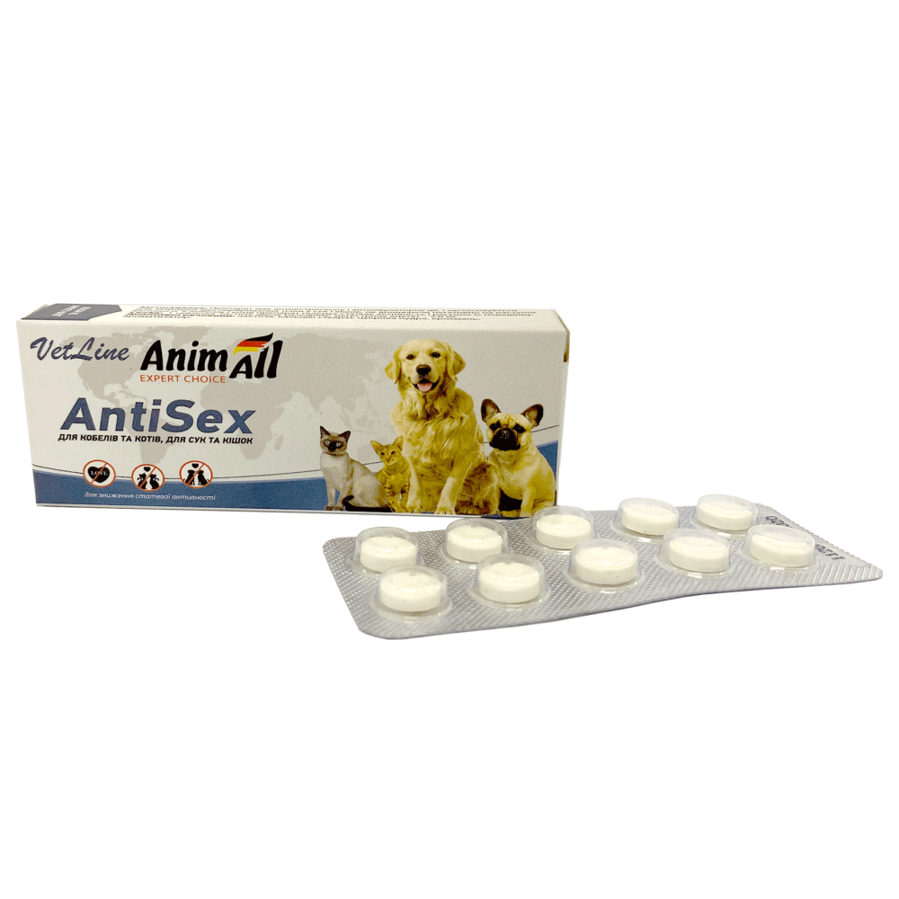 Дозування Перорально з кормом або примусово безпосередньо на корінь язика: котам: Для заспокоєння при статевому збудженні - 1 таблетку щодоби протягом 3 - 5 діб. кішкам: Для попередження тічки - 1 таблетку на 10-14 діб. Після відміни препарату тічка настає через 14 діб; Для припинення тічки - по 1 таблетці щодоби протягом 3 - 5 діб (з моменту прояву ознак статевого збудження) Як контрацептив - 3 таблетки протягом доби після спарювання. сукам: Для попередження тічки - 1 таблетку на 10 кг маси тіла тварини один раз в 14 днів. Після відміни препарату тічка настає через 21 добу Для припинення тічки - по 1 таблетці на 10кг маси тіла тварини протягом 7 днів (з моменту прояву ознак статевого збудження). Як контрацептив - 2 таблетки на 5 кг маси тіла тварини щодня протягом 2 діб після спарювання. кобелям: Для заспокоєння при статевому збудженні - 1 таблетку на 10 кг маси тіла тварини щодоби протягом 5 діб. Протипоказання Препарат не рекомендується застосовувати тваринам з захворюваннями статевої системи (піометра, метрит, ендометрит), пухлинах молочної залози, при діабеті, статевонезрілі тваринам, вагітним і годуючим тваринам. Не рекомендується застосовувати молодим самкам до першої тічки або як анестральную терапію при порушеннях статевого циклу. Застереження При тривалому застосуванні препарату можливі зміни статевого циклу, збільшення молочних залоз, надмірний апетит і збільшення маси тварини. Форма випуску 1 блістер, 10 таблеток. Зберігання Зберігати препарат в сухому темному, недоступному для дітей та тварин місці, окремо від продуктів харчування і кормів при температурі від 4 до 25 0С. Термін придатності 3 роки.
