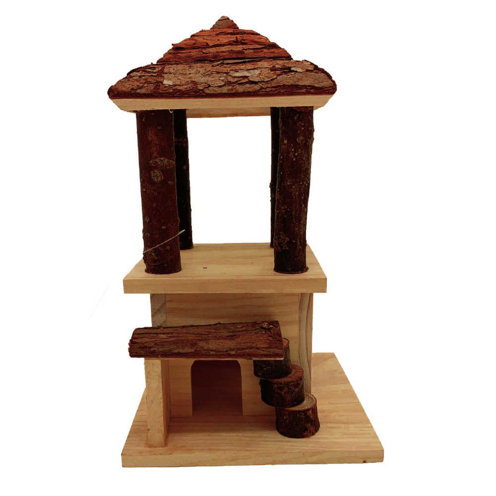 Дерев'яний кутовий будиночок для гризунів - красивий дерев'яний двоповерховий будиночок, що підходить для дрібних гризунів.