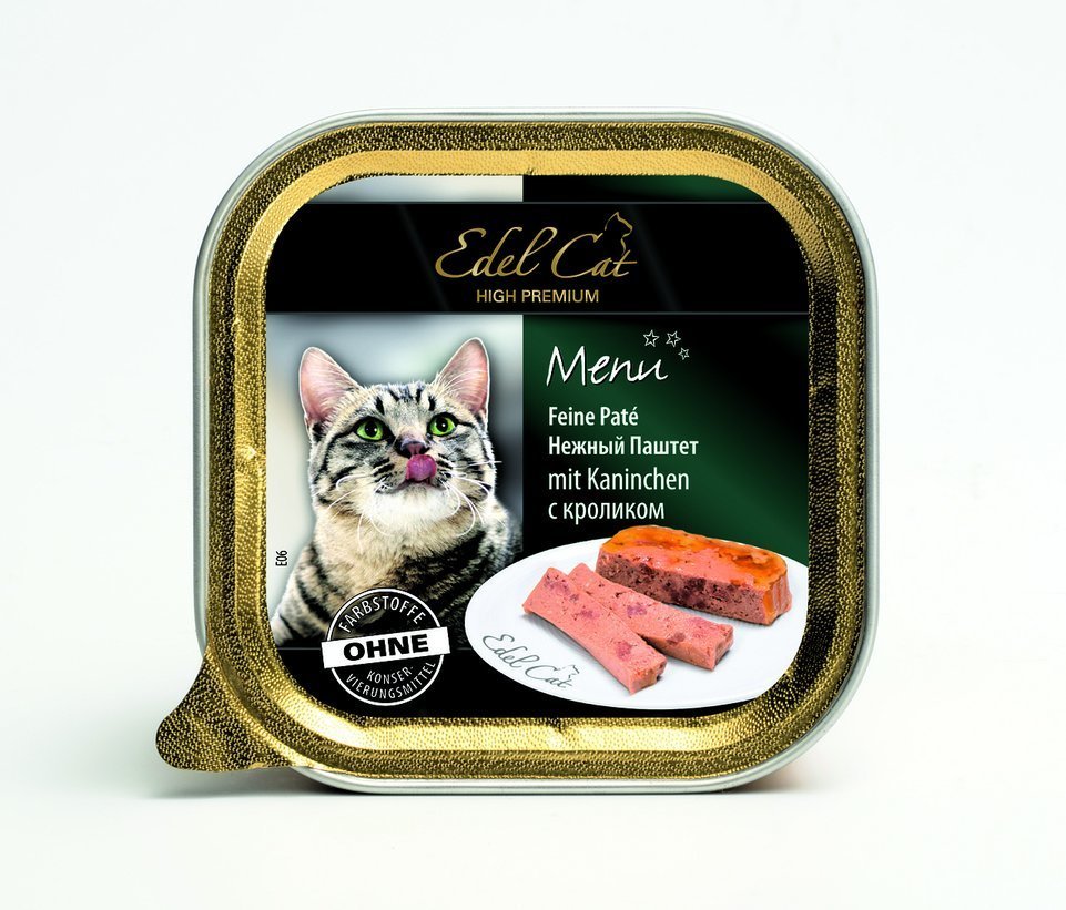 Консервований корм у вигляді найніжнішого паштету з м'яса кролика сподобається самим вибагливим у їжі кішкам. Це збалансоване харчування має не тільки приголомшливим смаком, але й забезпечує організм дорослої кішки всіма необхідними вітамінами й мінералами. Натуральний корм приготовлений по новітній високотехнологічній рецептурі. До складу консерви входить інулін, який поліпшує травлення й підтримує нормальну мікрофлору кишечнику. Корм Edel Cat не містить консервантів, антиоксидантів, барвників, ароматизаторів, підсилювачів смаку, сої.