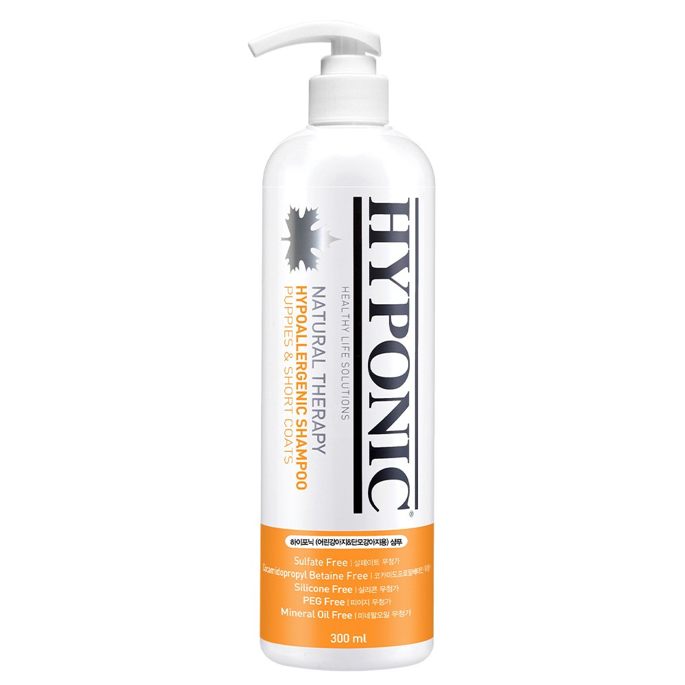 Гіпоалергенний шампунь HYPONIC (для цуценят та короткошерстих собак) спеціально розроблений для глибокого зволоження шкіри та шерсті цуценят віком до 12 місяців та короткошерстих собак. Шампунь HYPONIC виготовлений зі 100% натуральних компонентів і не містить небезпечних хімічних речовин. Насичені кремові бульбашки та м'яке відчуття після миття не потребують кондиціонера.