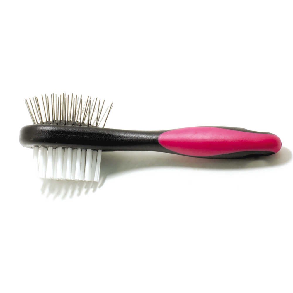 Двосторонні щітки – дуже корисний та універсальний інструмент для тварин. З одного боку такий гребінець розташовуються рідкісні металеві зубці, злегка закруглені на кінці, а з іншого – штучна або натуральна щетина. Таким чином, двостороння щітка забезпечує повноцінний догляд за шерстю, включаючи масаж.