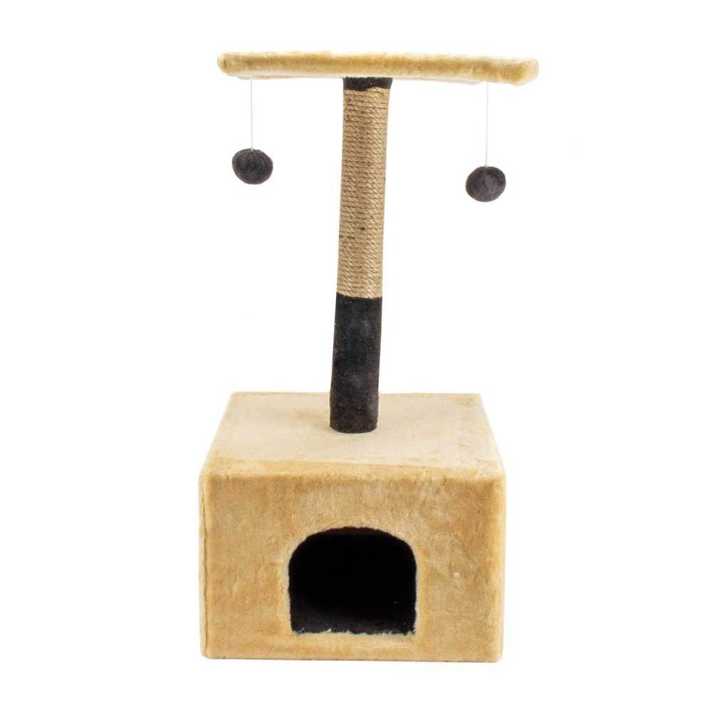 Кігтеточка Пухнастики будиночок з полицею, джут, бежевий, 38х35х50 см