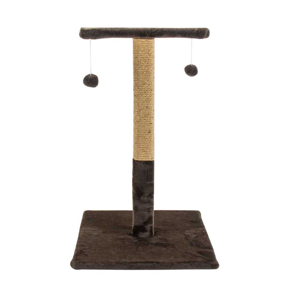 Кігтеточка Пухнастики, великий стовпчик з полицею, джут, шоколад, 75х45 см