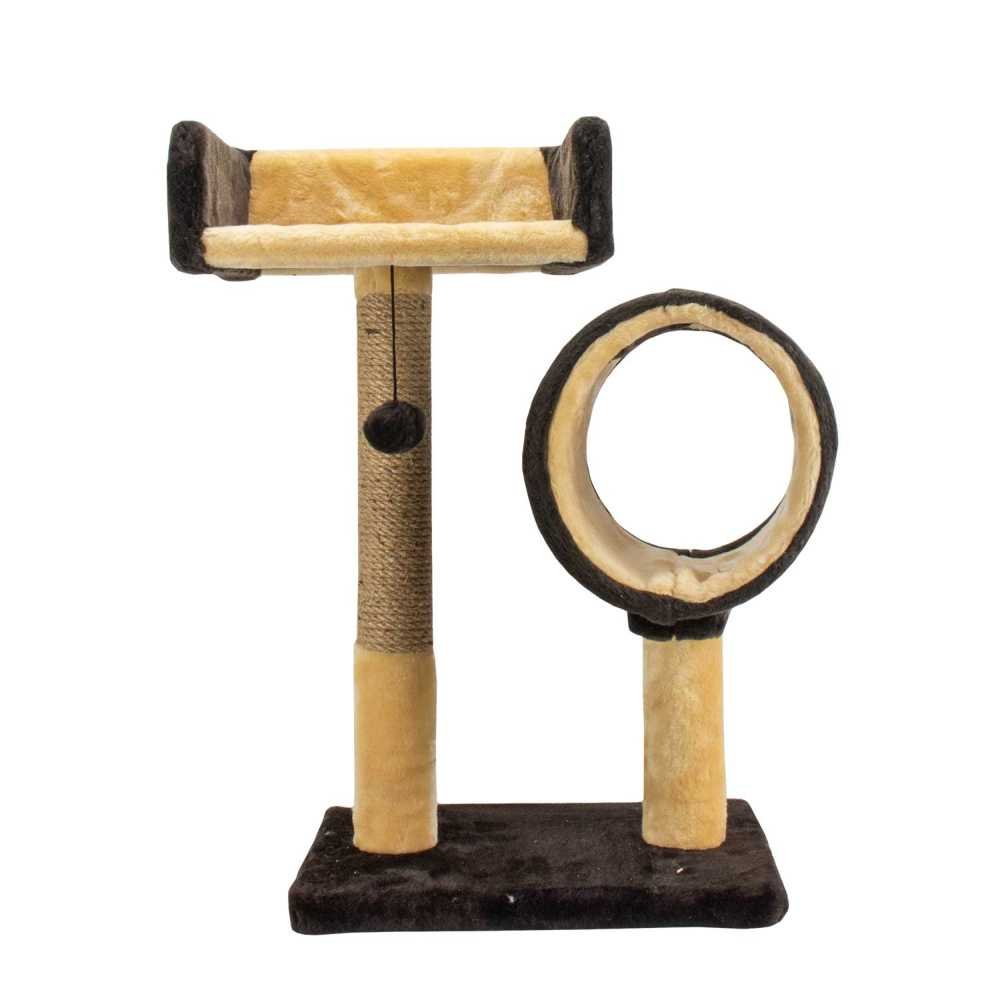 Кігтеточка Пухнастики з диваном і тунелем, джут, шоколад з бежевим, 56х38 см