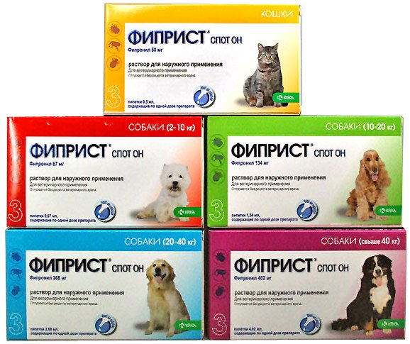 Засіб від бліх Фіпріст Спот Він має виражений інсектицидний і акарицидним дією відносно всіх фаз розвитку вший, бліх, власоїдів і кліщів (іксодові, хейлітелі, отодектоси), паразитують на собаках і кішках.