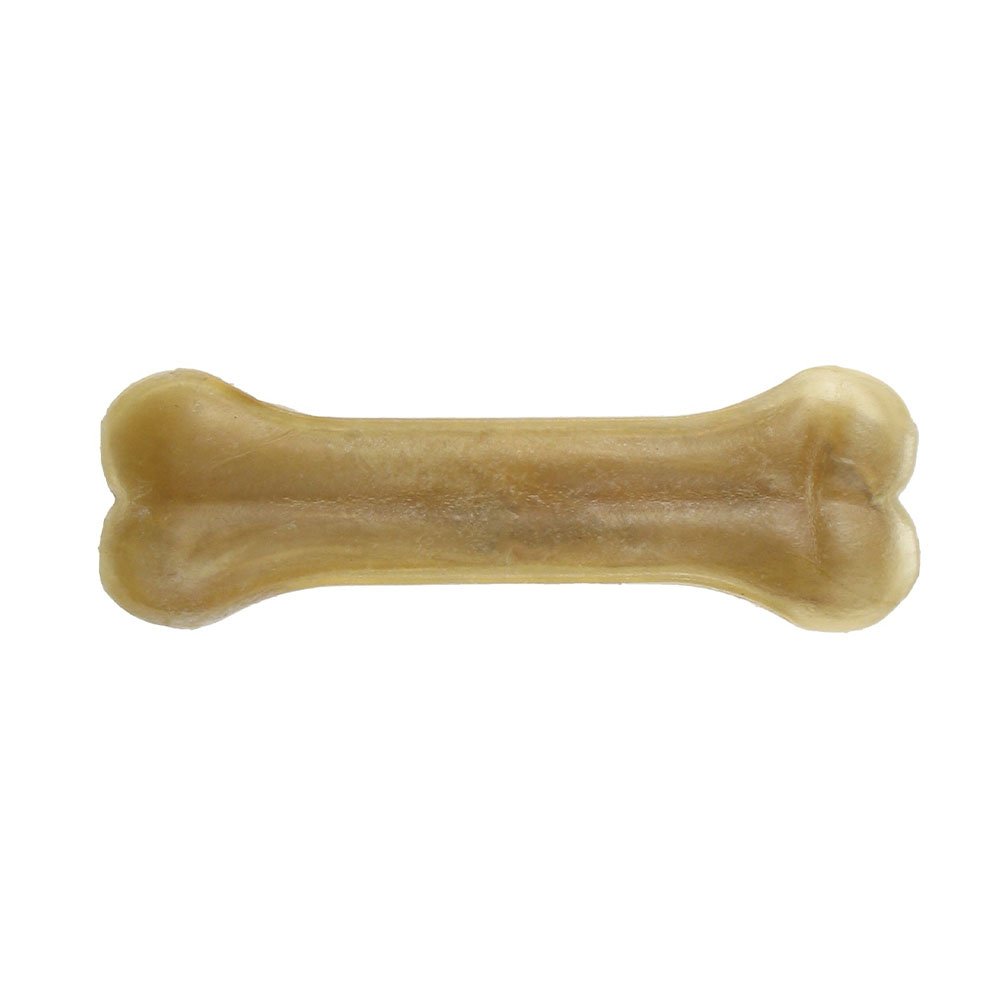 Пресована кістка виготовляється зі спеціальної маси, отриманої шляхом переварювання коров’ячої шкіри, яку потім висушують і пресують у формі кістки. Завдяки цим натуральним процесам делікатес виходить приємно твердий, має яскравий аромат та смак, а ще довго зберігається.