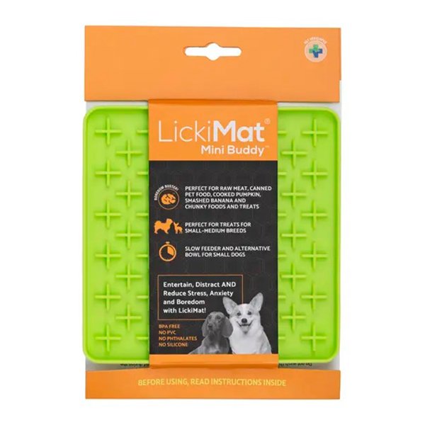 LickiMat Mini Buddy покращує сире годування, сповільнює годування, зменшує занепокоєння, нудьгу і деструктивну поведінку вашого собаки.