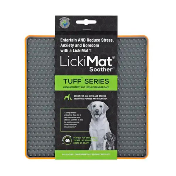 Точкові візерунки килимків LickiMat Tuff Soother розроблені з урахуванням задоволення вашого улюбленця й адаптовані для роботи з різними видами ласощів і продуктів, починаючи від йогурту й арахісового масла до різноманітних ласощів. Облизування на килимку підсилює смакові відчуття, даючи змогу вашому улюбленцю насолоджуватися їжею в менших кількостях. Крім того, LickiMat ідеально підходять для додавання вітамінних добавок і ліків до ласощів.