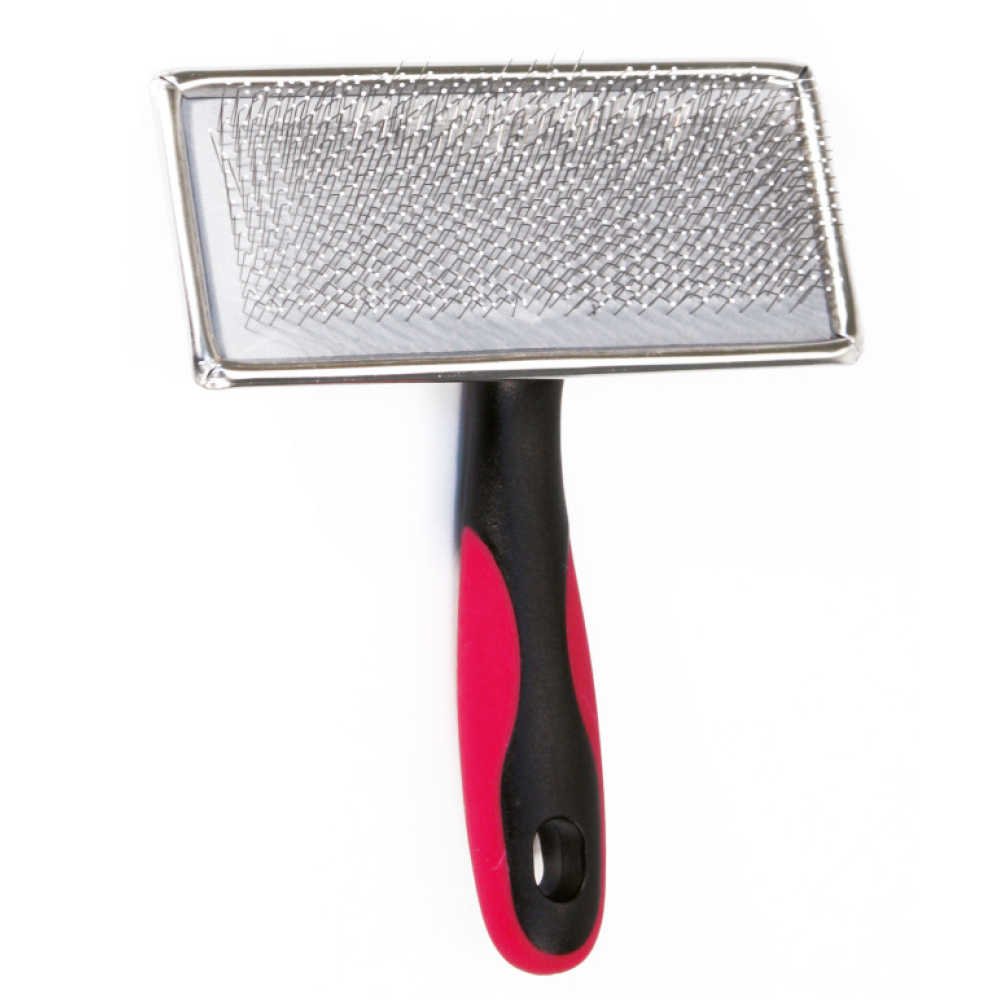 Велика кількість зубців цієї пластикової кардерної щітки для собак дає змогу видалити за один помах більше шерсті, ніж під час використання звичайної щітки.