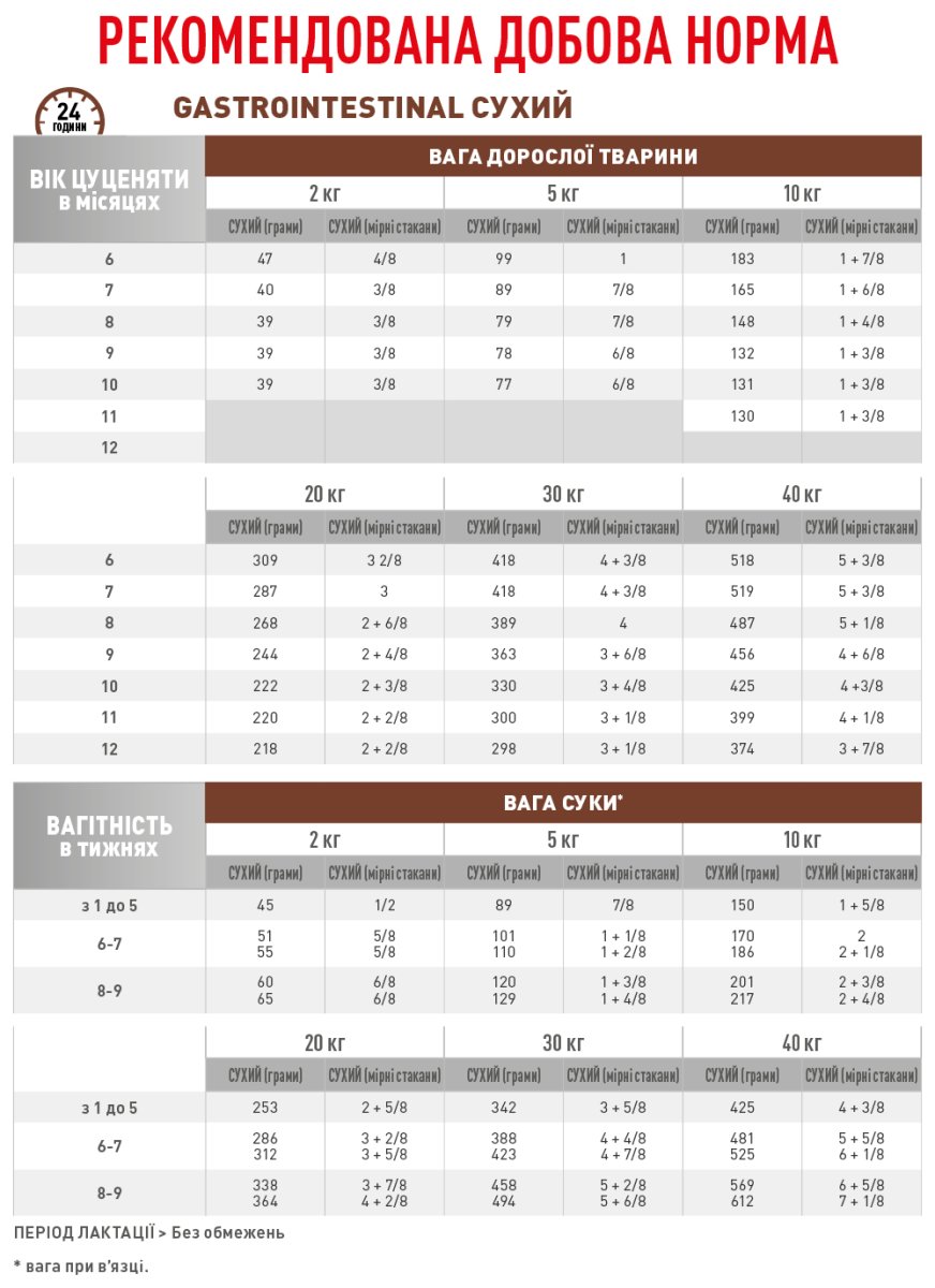 Рекомендовано для цуценят у період відлучення та до дорослого віку (і для вагітних/лактуючих собак) у випадках:
