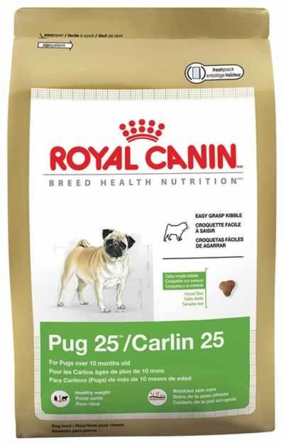 Особлива будова черепа мопса, називається брахіцефальним, характеризується великою головою з короткою квадратною мордою й типом прикусу – щільний перекус. Маленькі щелепи й товсті губи створюють для собаки проблеми при захопленні корму. Часто мопси ковтають крокети, не розгризаючи їх. Крокети корму Royal Canin мають особливу форму трилисника, яка робить їхнє захоплення значно простіше.
