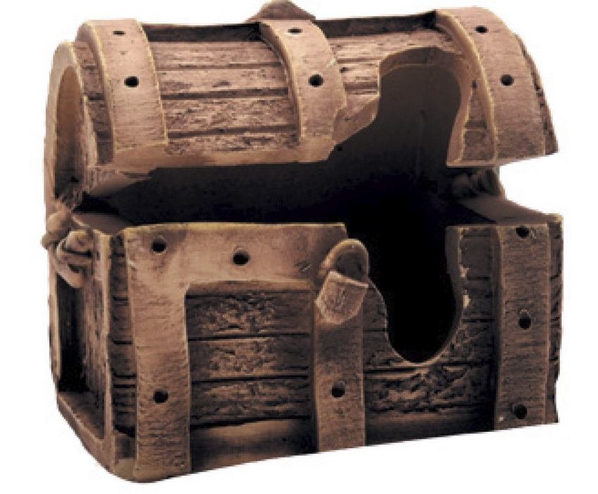 Покрытый водорослями сундук станет интересным дополнением дизайна аквариума и создаст особую таинственную атмосферу, намекая, что где-то рядом может быть спрятан клад. Через отверстие в сундук с удовольствием будут заплывать на отдых рыбы, а сам сундук отлично подходит для маскировки компрессора или небольшого фильтра.