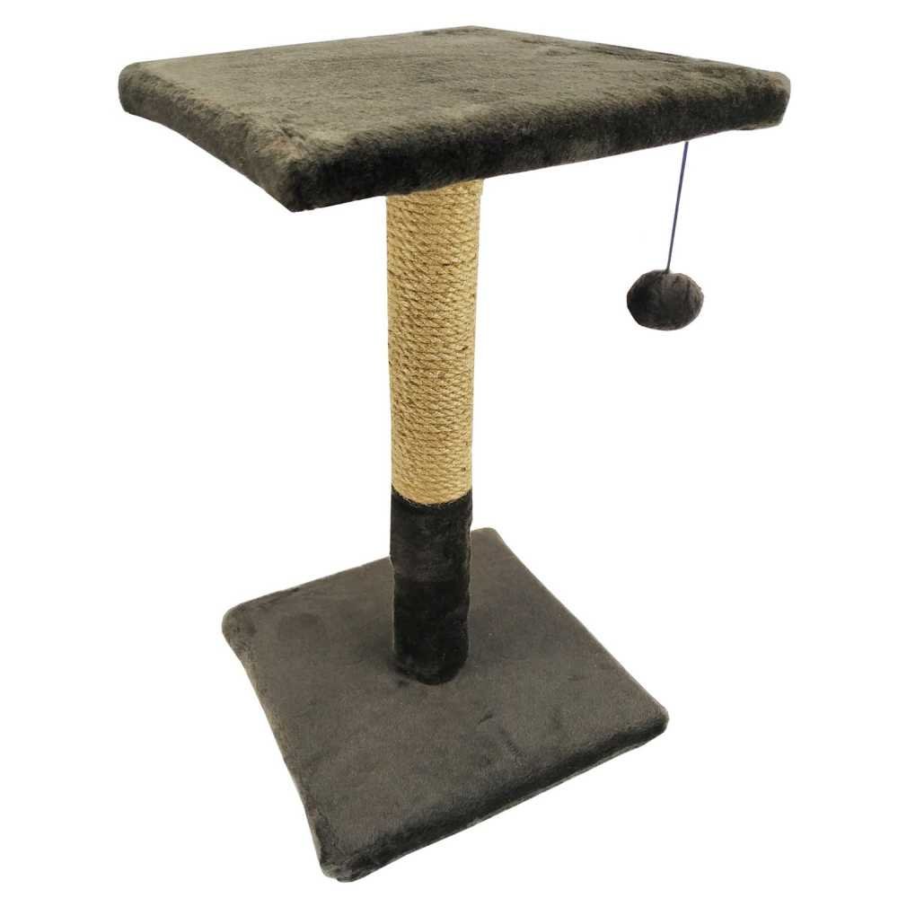 Когтеточка Пушистики с полкой, джут, шоколад, 30х30х50 см