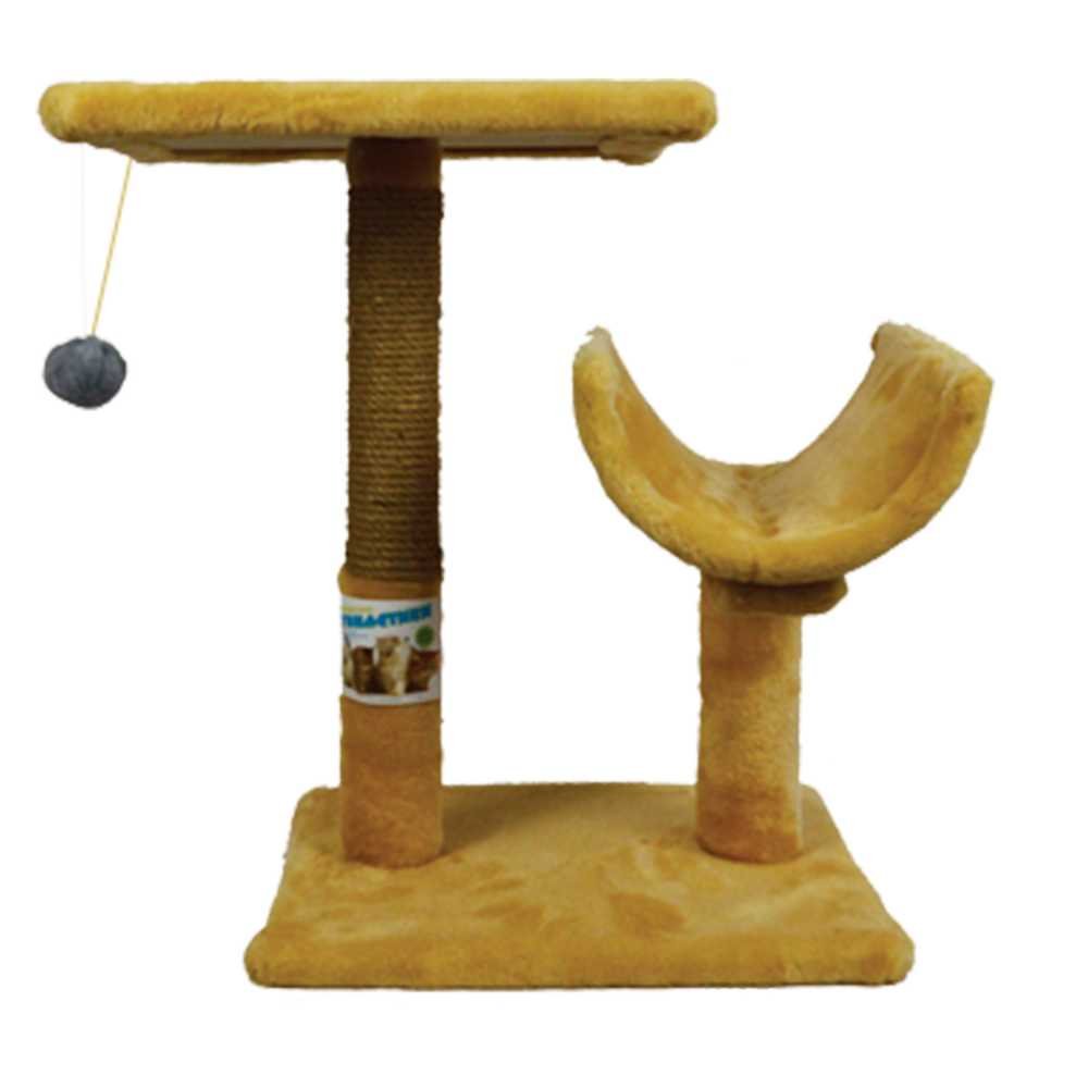 Когтеточка Пушистики с полкой и полутоннелем, джут, бежевая, 30х38х50 см