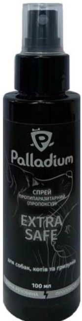 Спрей от паразитов Palladium Extra Safe — инсектоакарицидный препарат, который предназначен для уничтожения блох, вшей, власоедов и иксодовых клещей, паразитирующих на животных, а также для защиты от их нападения.Описание