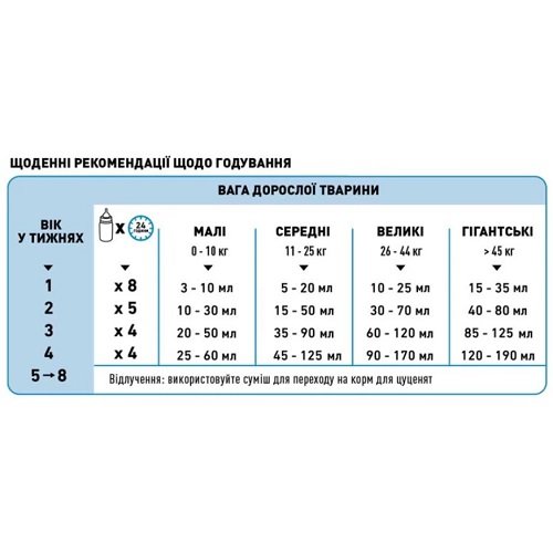Заменитель молока для щенков. Формула содержит основные питательные вещества, содержащиеся в молоке суки.