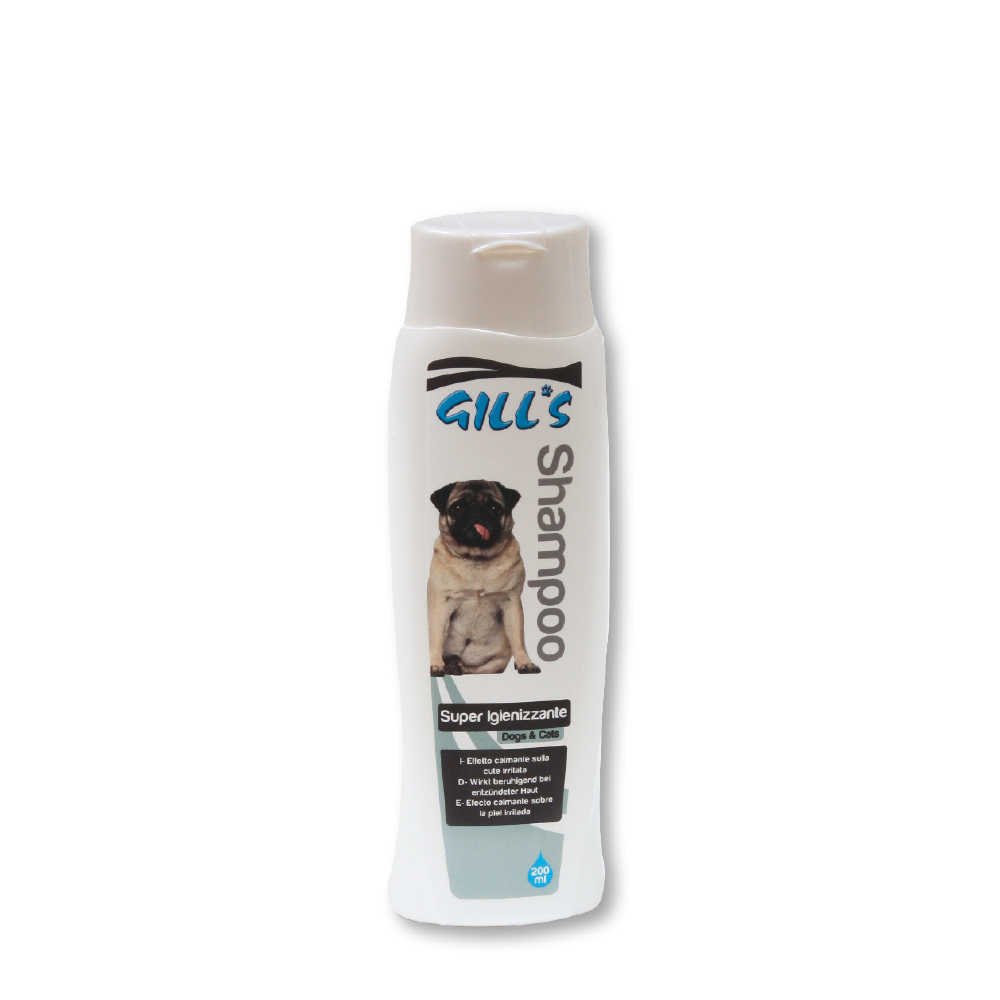 Супердезінфікуючий шампунь для тварин Gill's чинить заспокійливу дію на запалену шкіру. Він ефективно видаляє бруд і жир, залишаючи хутро м'яким і чистим на довгий час.