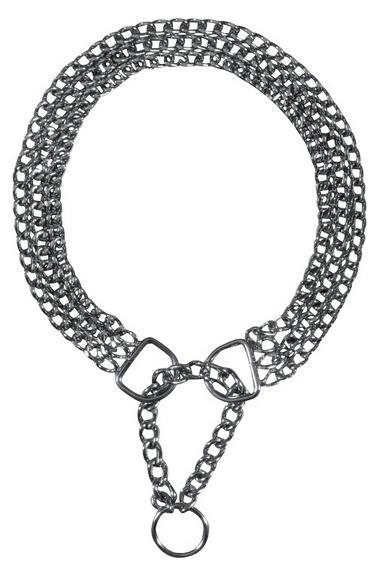 Ошейник трехрядный хромированный часто используется во время дрессировок и выставок, отличный инструмент для корректировки поведения вашего питомца.Описание