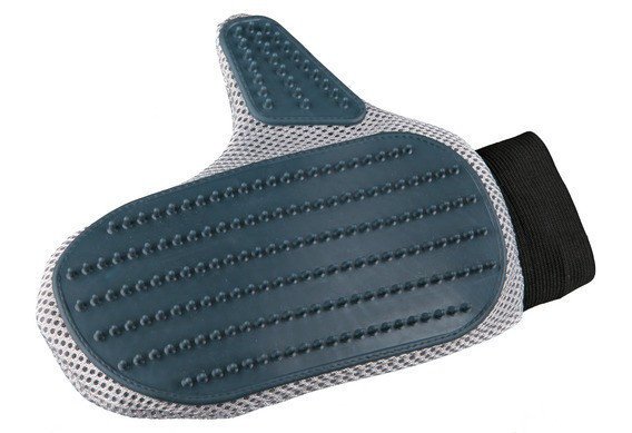 Массажная рукавица для кошек и собак для бережного ухода за волосяным покровом животных изготовлена из сетчатой ткани.Описание