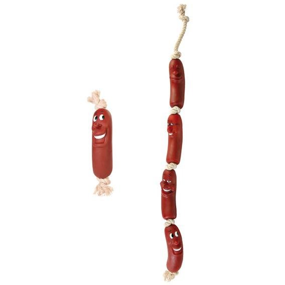 Виниловая игрушка для собак «Сардельки на веревке».Описание