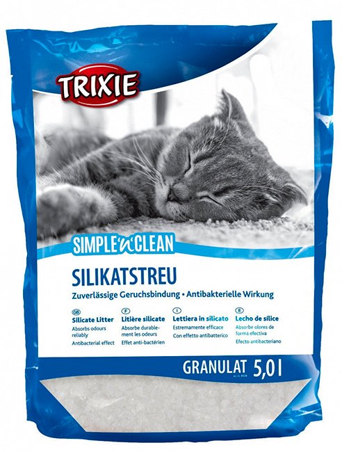 Simple'n'Clean Trixiе - абсорбирующий силикагелевый гигиенический наполнитель для кошачьего туалета. Эффективно поглощает влагу и нейтрализует запахи. Многочисленные микроотверстия в гранулах впитывают влагу в течение нескольких секунд. Неприятные запахи остаются внутри гранул, а жидкость просто испаряется.