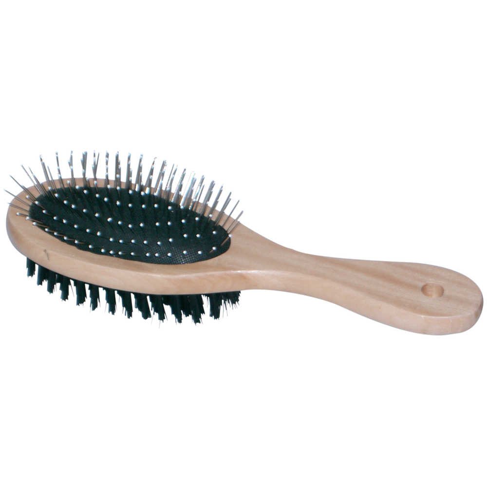 універсальна двостороння щітка для тварин, з дерев'яною ручкою