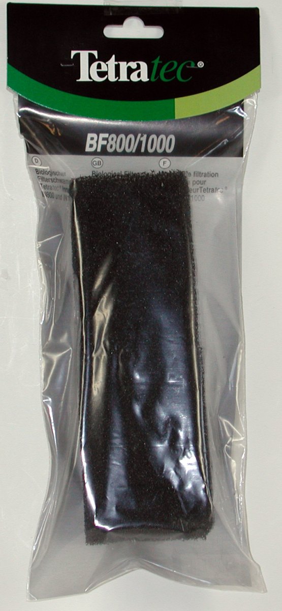 Губка Tetratec BF 800/1000 створює оптимальні умови для розвитку корисних бактерій. Після недовгого використання, пориста структура поролону заселяється корисними бактеріями. Це сприяє утвору потужної колонії бактерій для біологічної фільтрації води. Губка Tetratec BF 800/1000 підходить для фільтрації води в прісноводних і морських акваріумах. Вона розроблена спеціально для зовнішніх фільтрів Tetratec ЕХ 800, ЕХ 1000. Поролон, з якого виготовлений губка, повністю безпечний для акваріумних мешканців, він не виділяє у воду ніяких шкідливих речовин. У процесі експлуатації губку необхідно промивати, таку процедуру потрібно проводити разом з очищенням фільтра. Рекомендується міняти губку раз у рік. В упакуванні поставляється дві змінні губки.