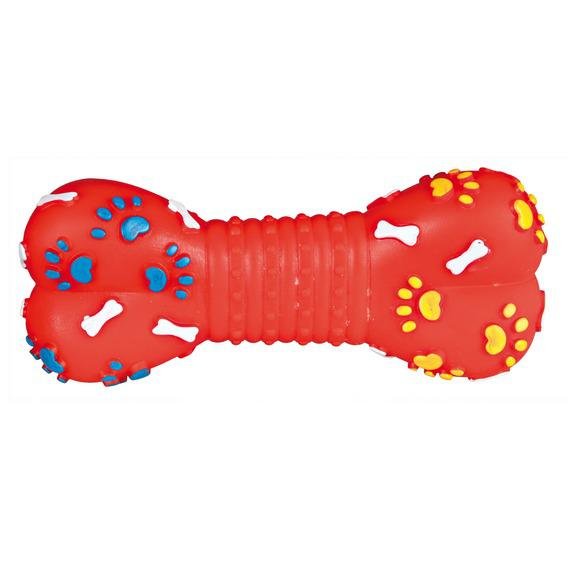 Різнобарвні кісточки для собак виготовлені з вінілу, не токсичні й зовсім безпечні для вашого вихованця. Спеціальна рельєфна поверхня забезпечує м'який масаж ясен і очищає зуби від залишків їжі. Іграшка видає їсть звук, що гарантує підвищений інтерес собаки. - Розмір: 15 см. - Колір в асортиментах.
