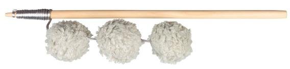Вудка із плюшевими м'ячиками Trixie призначена для активних ігор у приміщенні. Має невеликий розмір – 35 см, тому підійде для розваг як з кошеням, так і дорослою тваринам. Виріб складається з дерев'яної палички, мотузки й кульок. У кульки додане брязкальце й котяче м'ята.