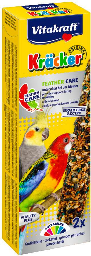 дзьоба. Крекер Vitakraft полегшує процес зміни пір'я в птахів. Він містить життєво необхідні мінерали й вітаміни, полегшує линку й робить птаха