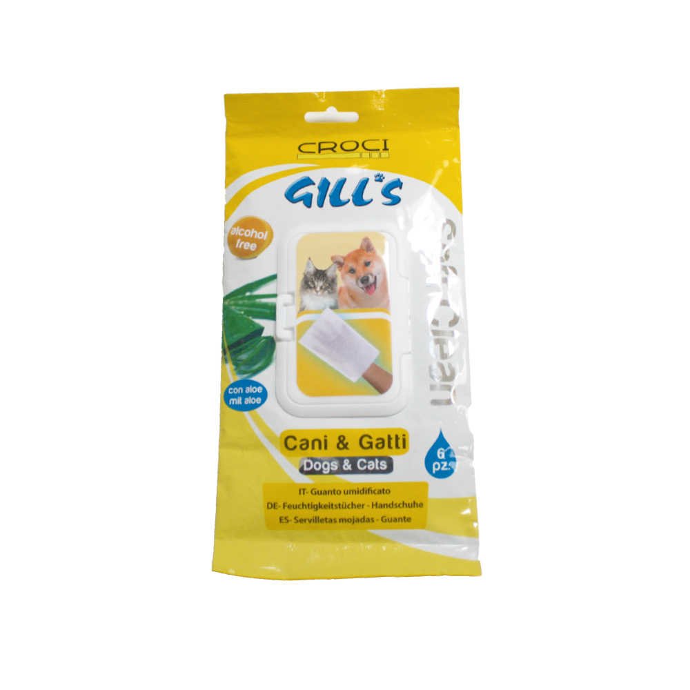 Вологі рукавички Gill's Soft Clean for Animals для котів і собак дають змогу швидко та легко мити шерсть вашого чотирилапого друга. Їх використовують безпосередньо на тварину, щоб промити шерсть, надати їй блиск і легкий аромат. Не містять спирту та ідеально підходять для очищення чутливих ділянок собак і котів (наприклад, очей).