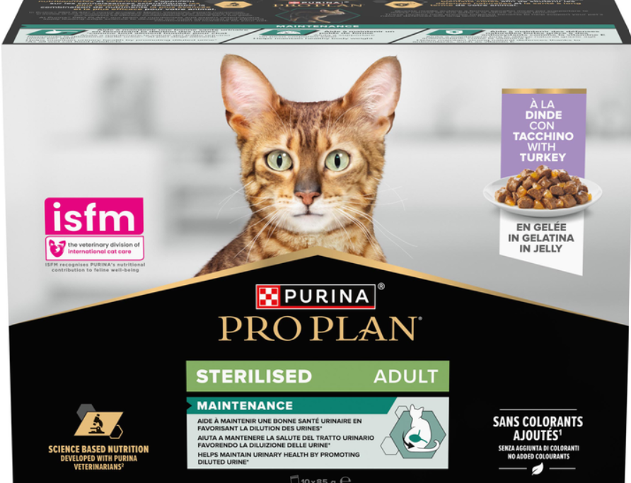 Вологий корм PRO PLAN Sterilised Nutrisavour для стерилізованих кішок з індичкою, мильтипак 10х85 г