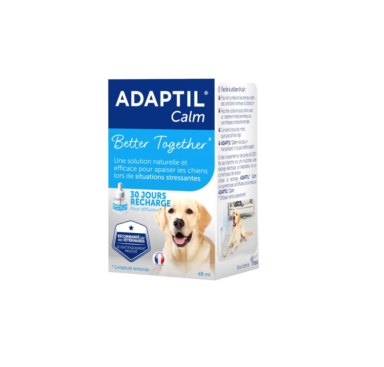 Змінний флакон для засобу Ceva Adaptil Diffuser містить синтетичний аналог феромону самок у період лактації, забезпечує собакам різного віку відчуття спокою та захищеності, робить їхній емоційний стан більш стабільним і допомагає адаптуватися до різних умов. Змінний флакон використовується після закінчення терміну дії основного флакона (за 4 тижні), що входить до комплекту Ceva Adaptil Diffuser.
